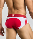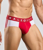 Refresh your underwear drawer with the MaleBasics Spot Brief-Red-, a modern twist on the classic brief. Its soft cotton front provides day-long comfort, while airy mesh panels along the sides and back boost breathability. The wide nylon waistband stays securely in place, so you can move through your day without constant adjustments.