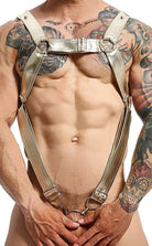 Experience a harmonious balance of functionality and fashion. The harness's elastic material molds seamlessly to your form, offering a fit that is both secure and luxuriously comfortable. Adding to its allure are the metal rings, which not only reinforce its structure but also contribute a daring, visually captivating touch, establishing this harness as a statement accessory in your intimate wardrobe.