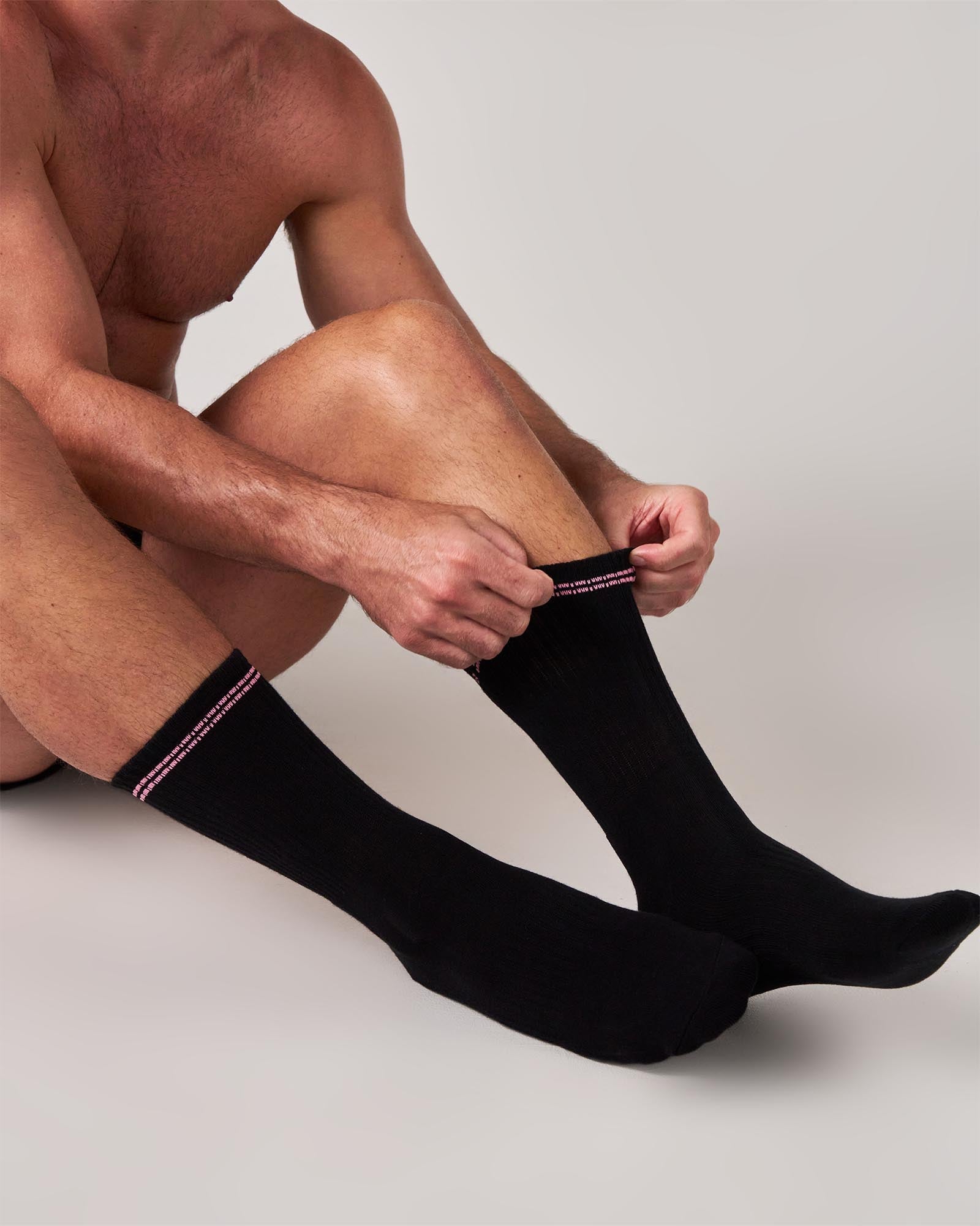 All day stay ups! Super comfortable and durable cotton blend crew length sport socks that will not sag or ride down. Ribbed cuff with horizontal logo and cushioned footbed.