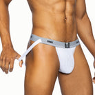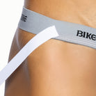 This jock has a low swimmer cut 1” wide BIKE® logo elastic waistband and sits perfectly hidden under your favorite gym and everyday gear. Available in white and also in black.