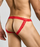 The MOB Erotic wear Lace Jockstrap is a jazzed up, ultra sexy version of the traditional style and is guaranteed to give you the wow factor in the bedroom. The delicate lace design molds to your body and begs to be caressed. The front pouch is incredibly supportive and enhances your manhood, while keeping your assets exactly where they should be as you move. The rear has the jockstrap styling and leaves you buttocks fully exposed for a hot look. The fabric is made of 85% nylon and 15% spandex giving you that extra stretch where you need it most. The ultimate choice of underwear for a romantic evening that leads to a hot night of passion, these MaleBasics Lace Jockstrap will certainly impress your partner. They can be worn under tight fitting clothing as there is no uncomfortable bunching up of fabric that can look unsightly and means that you can go about you day, or night, with confidence.Your smooth, sleek silhouette will look amazing! They come in one color, a sexy black that is ideal for all occasions. Sizes available are small-medium and large-XL. If you want to spice things up with your partner, these are an ideal option.