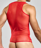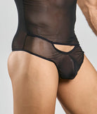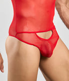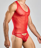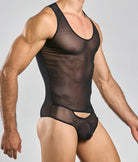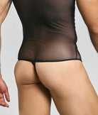 The MOB Erotic wear Sexy Body Tulle Black is advertised as underwear but looks so good you could wear it for a night on the town causing heads to turn and get envious looks from others. This body is definitely for the ultra modern man whos not afraid to strut his stuff in this exceptionally sultry, sexy body. The see through tulle material caresses the body as it clings lovingly to your every contour. The front of the body follows the traditional shape of a vest until it reaches the waistline where it continues down to encompass the whole body with only a seam differentiating the two. There is a provocative semi circular cut out to the front which just threatens to expose your assets. The back, once it reaches the waistline is attached to the front by the thong which sweeps between your cheeks, leaving the buttocks exposed. The blend of 95% nylon and 5% spandex allows for some stretch in the material whilst still holding shape. There are colours for all occasions, sheer black, sizzling red and dazzling white. They come in sizes small to medium (waist 68 85 cm/28 35) and medium to extra large (waist 86 101 cm/36 to 40)
