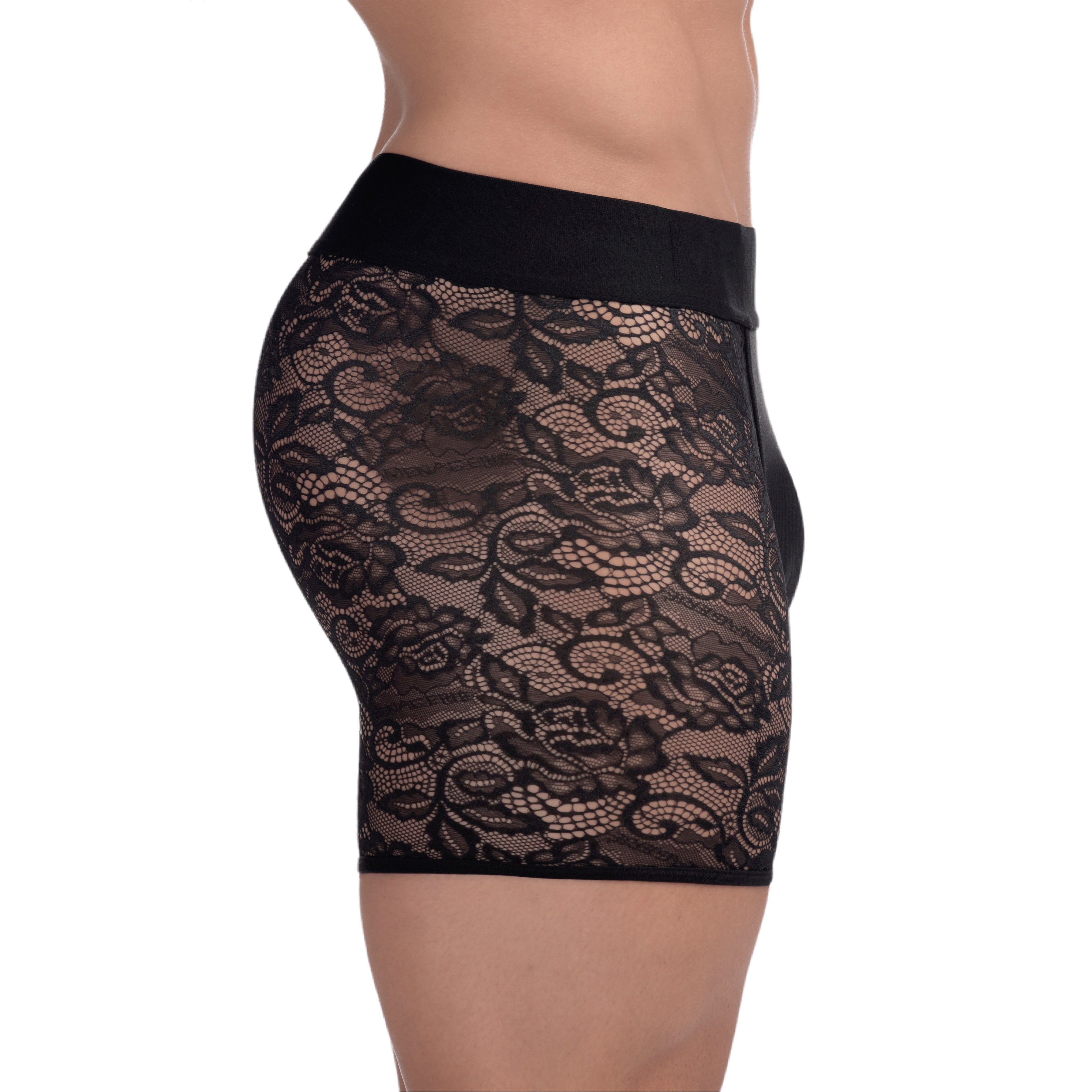 This Classic Boxer Brief design features a 2 inch wide cotton + viscose elastic waistband that sits above the hip. Elegantly finished with “ Rose Signature Edition” lace leg panels that hug the thighs. Finished with a stretch lycra flat-front design, making it easy to wear for everyone.