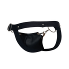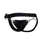 Embrace a blend of audacious allure and unmatched comfort with the Dngeon Ring Mounted Jockstrap. This meticulously crafted piece radiates sophistication with its sumptuous faux leather texture, available in a palette of both classic and contemporary hues. The front is adorned with a full cup, meticulously designed to provide a gentle lift to your manhood, striking the perfect balance between support and visual appeal. The daring design is further enhanced by metal rings gracefully placed at the hips, offering a hint of avant-garde style. A thoughtfully exposed back ensures optimal breathability, keeping you cool and comfortable through any venture. Ethically created in Colombia by a team of dedicated women heads of families and powered by renewable energy, this jockstrap speaks volumes of Dngeon's commitment to sustainable luxury. Designed in Canada, every stitch resonates with quality and innovation, ensuring you not only wear a product but experience a sensation.