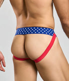 Show your patriotic spirit with the MOB USA Flag Jockstrap. Featuring the iconic stars and stripes of the American flag on the pouch, this jockstrap combines bold style with ultimate comfort. Made from lightweight, breathable polyester, it provides all-day comfort and support. Perfect for anyone looking to make a statement, this jockstrap is also machine washable for easy care. Celebrate in style with this unique piece of underwear.