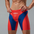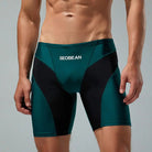 Experience the thrill of the ocean with Seobean Jock Jammer! Our nylon and Spandex briefs provide the perfect fit for adventurous men like you. Available in M, L, XL, and XXL (Asian size), our low waist swimming shorts feature a bold black and blue or green gradient design. Dive in and make a statement with our patchwork pattern and 2-color spliced style. Don't miss out on this must-have for your swimwear collection!