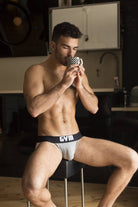 Introducing the GYM Cotton/Modal Jockstrap. This jockstrap is made of a combination of Cotton/Modal and Elasthane fabric which provides both support and adequate stretch. The super comfy elastic waistband is a full 2" thick. Complete with super thick 1.5" legstraps. A super comfortable jockstrap for work or play. Available in Black or White or Blue. Fabric: 47% Cotton/47% Modal/6% Elasthane.