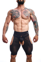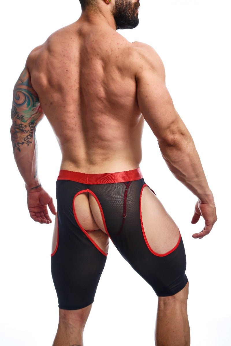 Experience unmatched tactile delight with the MOB Sleek Jock Jogger Set. Crafted for the discerning gentleman who seeks to merge style with sensuality, this set combines the bold aesthetics of a jock and the athletic flair of knee-length joggers. Intricately designed with side perforations, it boasts both ventilation and a touch of audacity, ensuring you remain both cool and eye-catching. The use of mesh as the chosen fabric provides a balance between allure and comfort, making it an irresistible choice for intimate occasions and relaxed lounging alike. Rooted in ethical values, this set emanates from the hardworking hands of Colombian female household heads, seamlessly integrating their tales of empowerment and dedication. With renewable energy driving its creation, each stitch reaffirms our devotion to sustainability. Conceived and infused with Canadian design sensibilities, this ensemble offers a unique blend of elegance and edge. Whether it's the timeless allure of black or the fierce dynamism of redblack, available in sizes SM and LXL, the MOB Sleek Jock Jogger Set is bound to redefine your innerwear game.