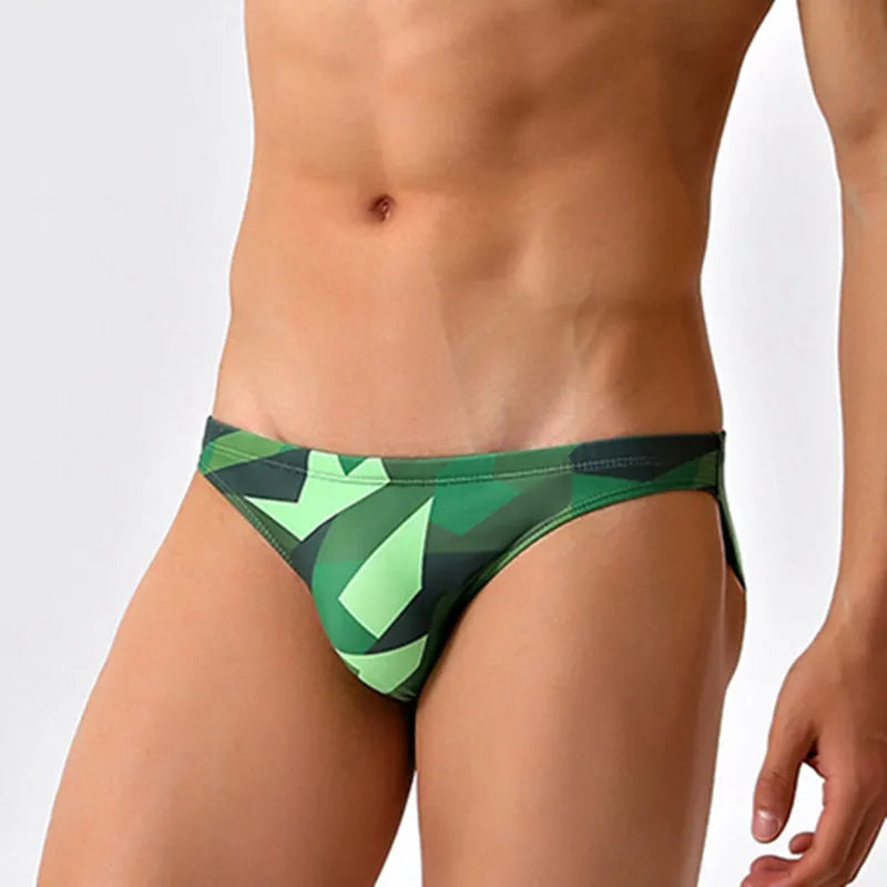 The Modern Camo Low Cut Swim Brief guarantees a risky and adventurous experience, perfect for those who seek a challenge. Made with high-quality nylon and Spandex material, these swim briefs are designed to fit true to size. Available in Asian sizes S, M, L, XL, and XXL, with the option to select based on the waist size. The low waist design, along with the elastic waist and internal drawstring closure, adds a touch of boldness and style. Featuring a geometric pattern and a high cut design on the narrow sides, these swim briefs are perfect for men who want to make a statement. Don't miss out on these hot, sexy swim briefs! Push your boundaries and embrace adventure with the Modern Camo Low Cut Swim Brief. Crafted from high-quality nylon and Spandex, these swim briefs are designed for true fit and maximum comfort. Choose from Asian sizes S, M, L, XL, and XXL, and find the perfect fit based on your waist size. The low waist design, elastic waist, and internal drawstring provide a bold, confident look. The geometric print and high cut sides make a statement that's sure to turn heads. Don't hesitate, these swim briefs are a must-have for any daring swimmer!