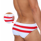 Step out of your comfort zone with the Red Stripes Swim Brief! Designed for risk-takers and adventure seekers, these briefs feature a bold striped pattern and are made with a blend of polyester and spandex. Don't be afraid to size up, as these briefs tend to run smaller. Shop now and add some excitement to your swimwear collection!