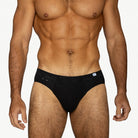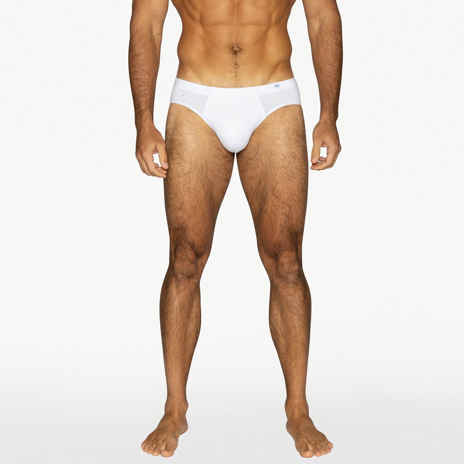- Design: Higher-cut legs with classic men’s bikini brief styling