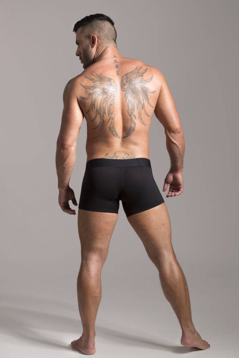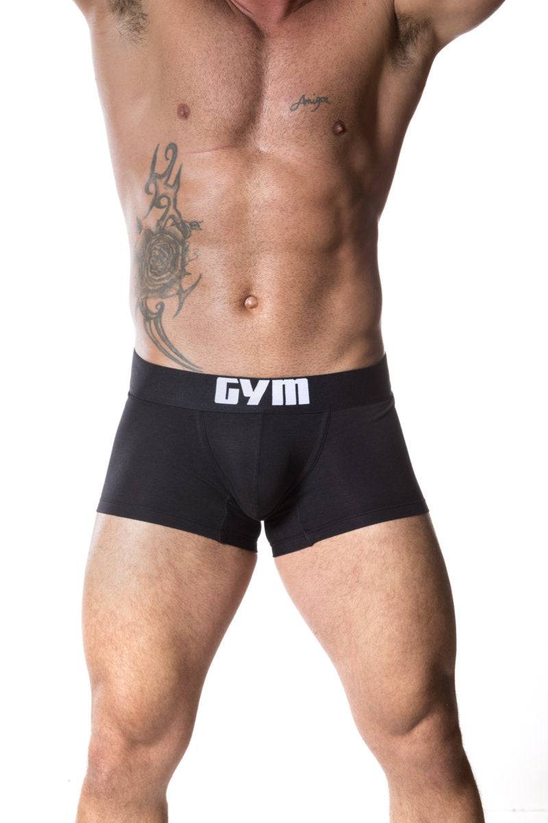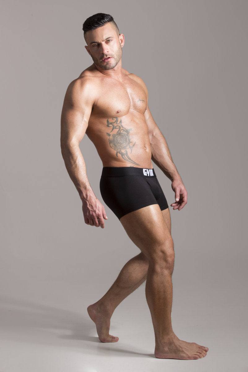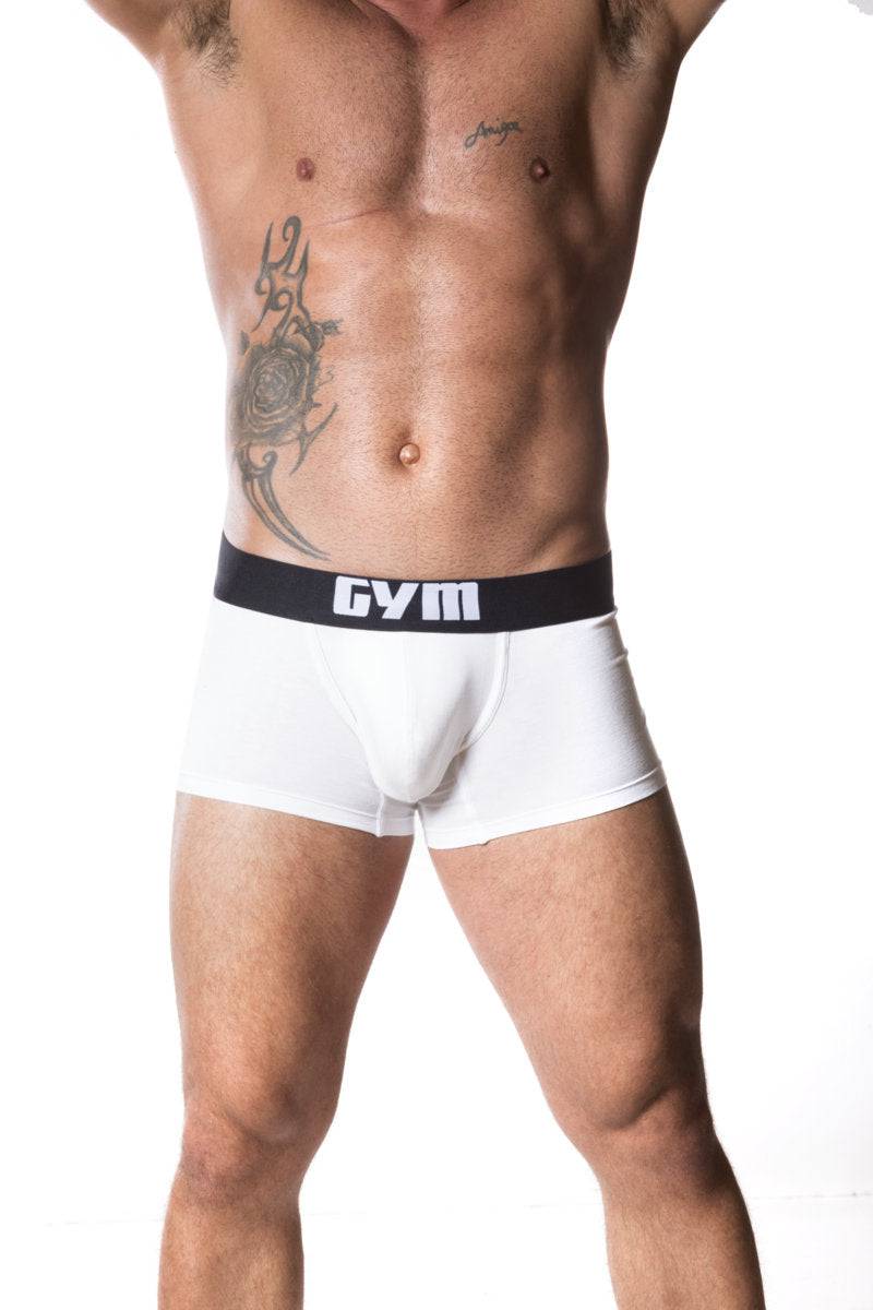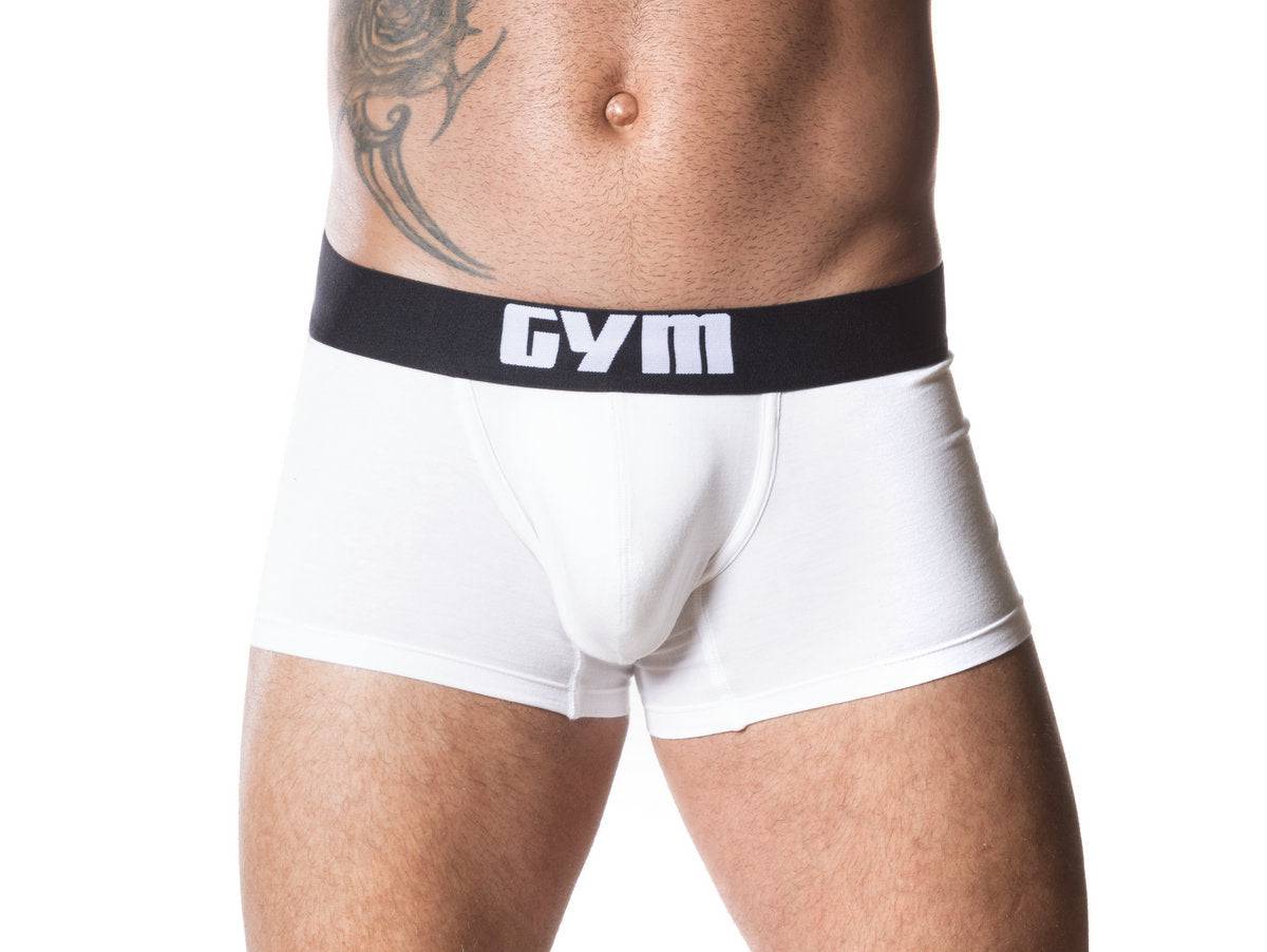Introducing the GYM Cotton/Modal Boxer Brief. This boxer brief/trunk style underwear is made of a combination of Cotton/Modal and Elasthane fabric which provides both support and adequate stretch. The super comfy elastic waistband is a full 2" thick. Super comfortable underwear for work or play. Available in Black or White. Fabric: 47% Cotton/47% Modal/6% Elasthane.