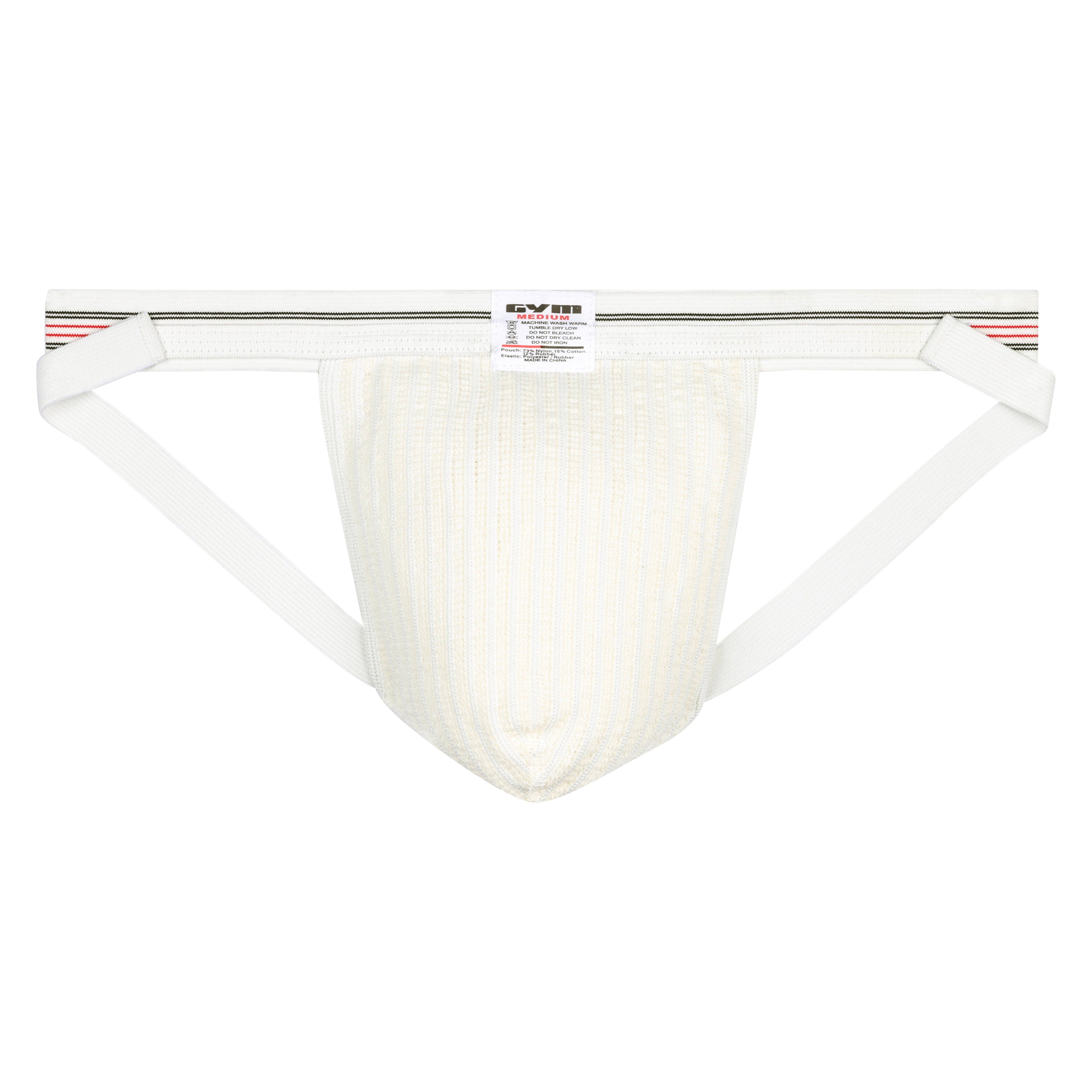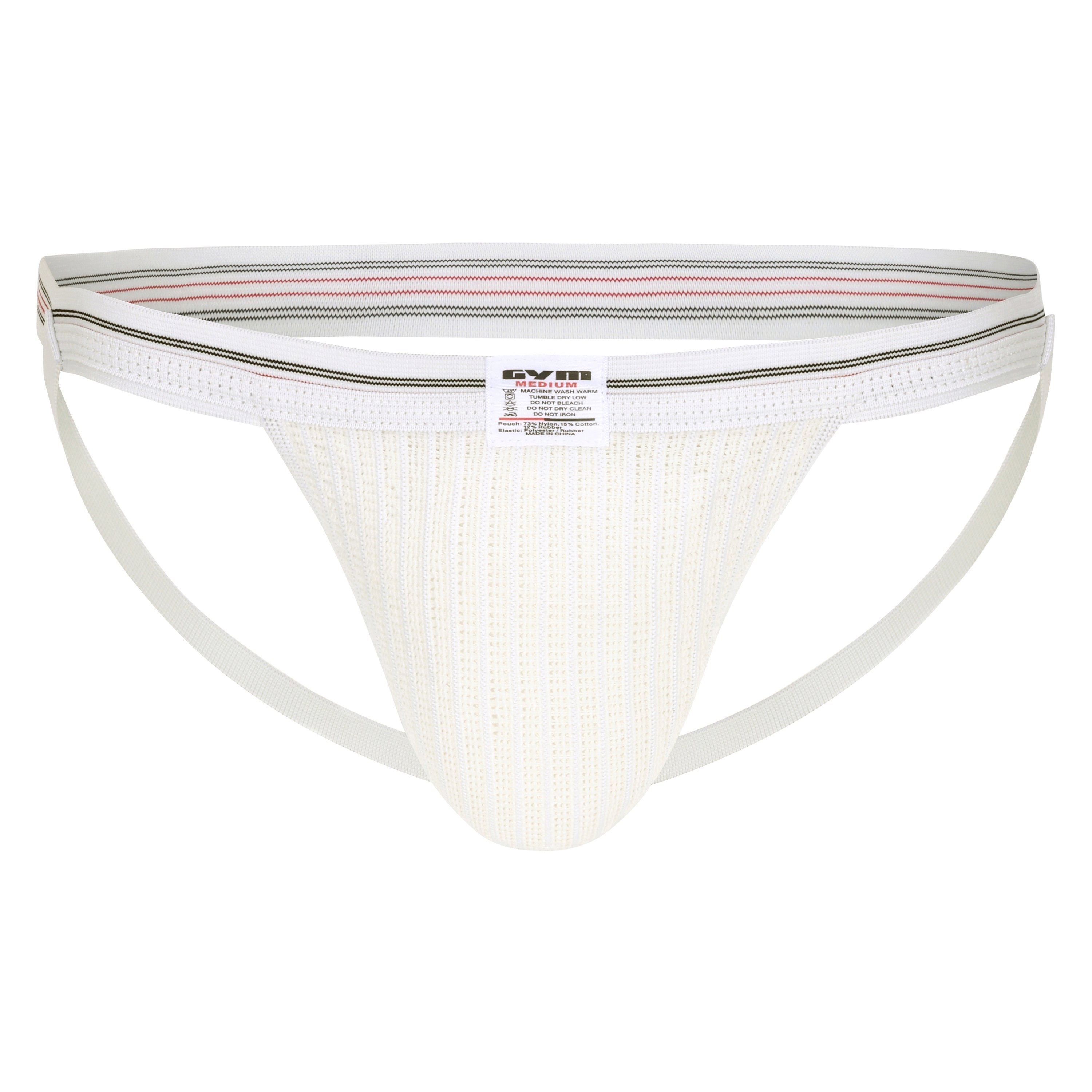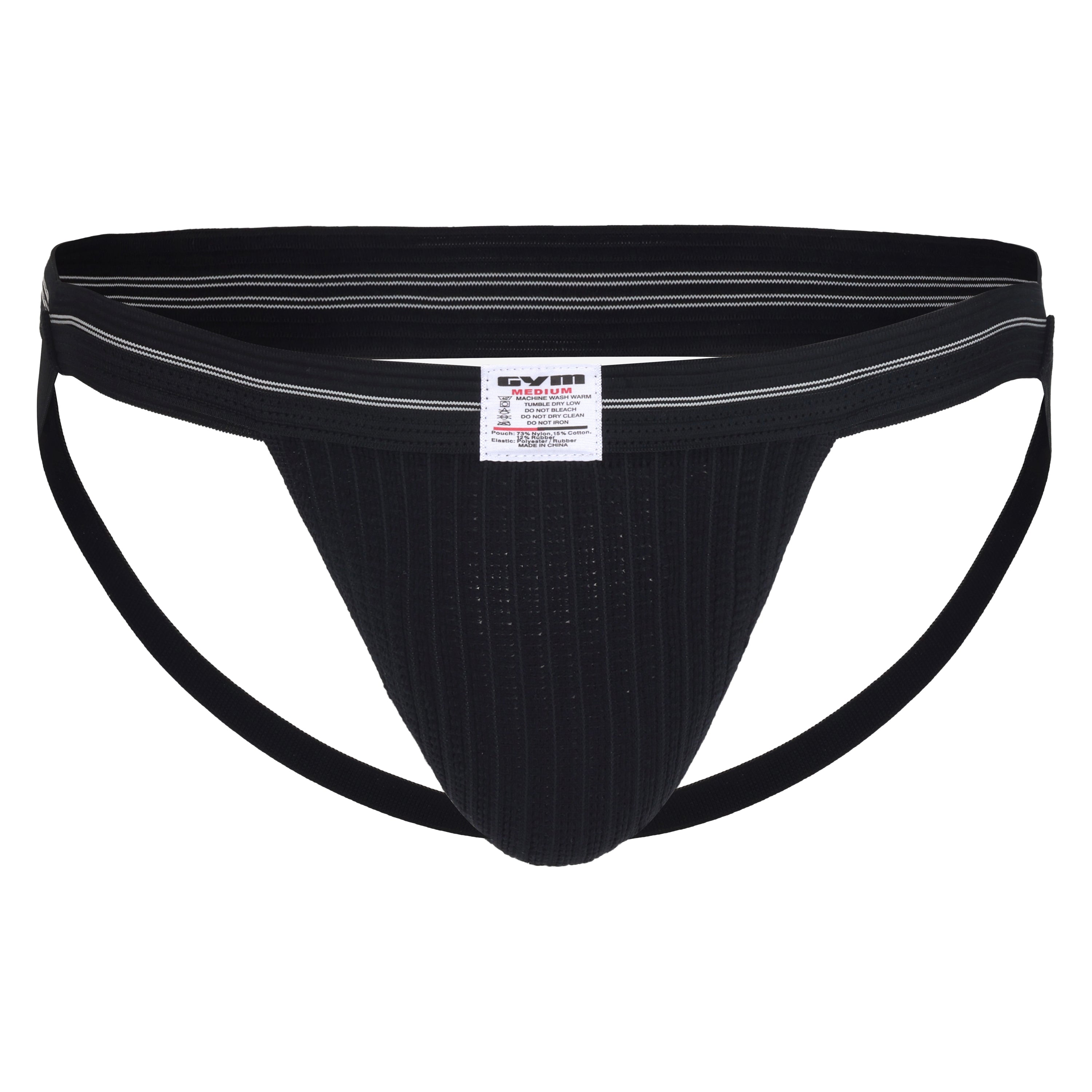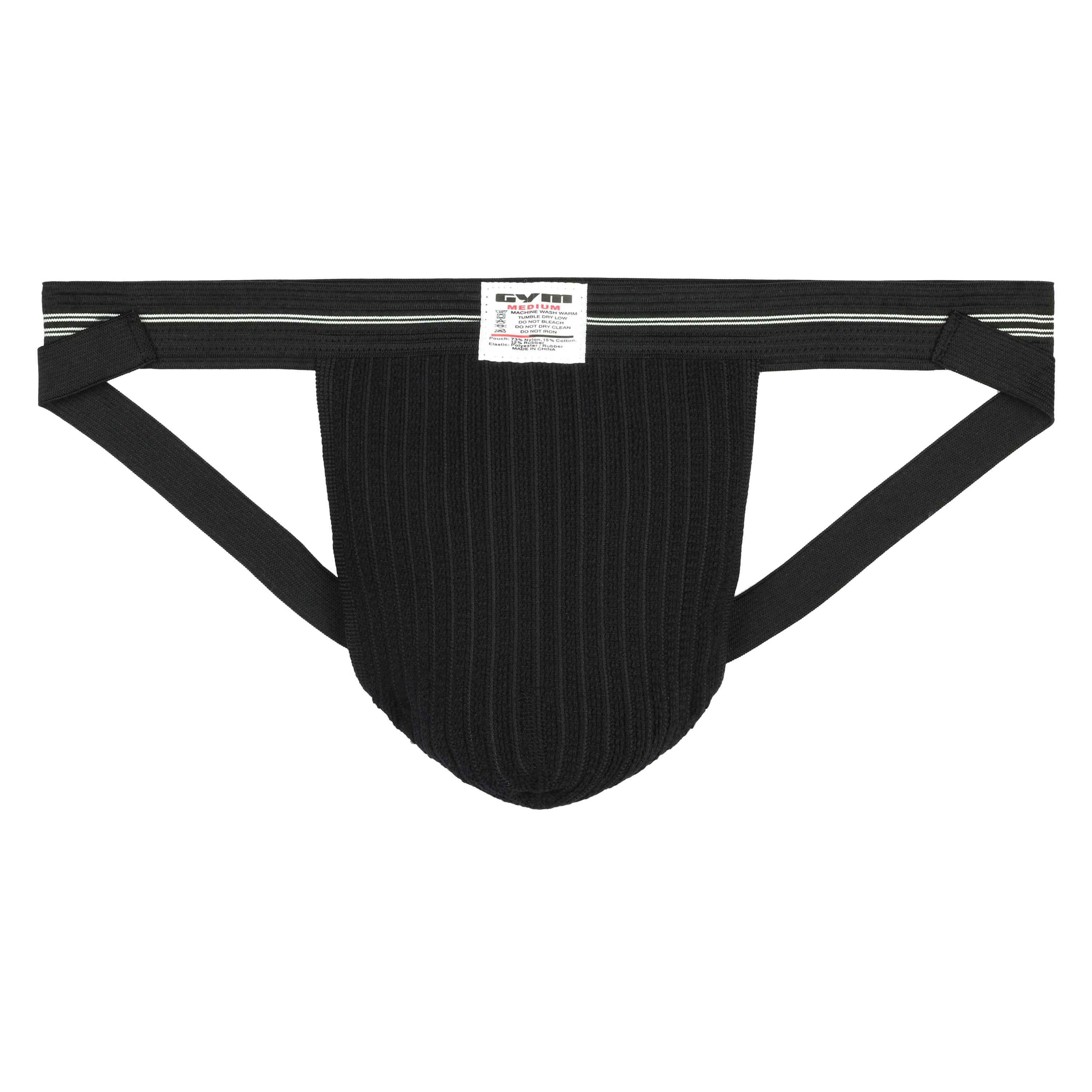 The GYM 1" Old School jockstrap is a classic 1" wide band athletic supporter great for swimming and running. Made with a thin 1" waistband and 1/2 leg straps. Made of a breathable mesh fabric material. Composition: Pouch is 73% Nylon, 12% Rubber and 15% cotton