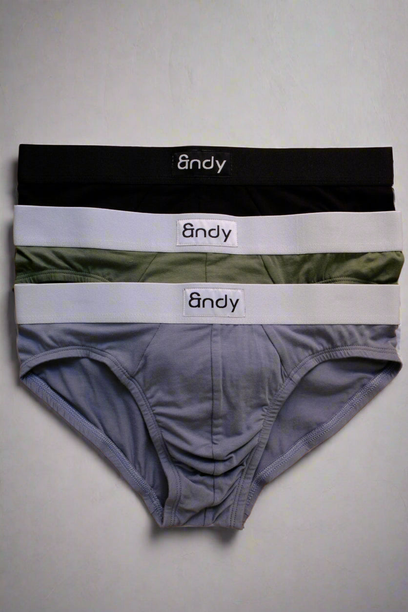 Our signature micro briefs come in a pack of three of black, slate gray, and sage. They are made from ultra-soft, smooth-stretch microfiber that that moves with you. Designed with a low-rise fit, full back coverage, and a contoured pouch for extra support where it counts. Finished with our &ndy logo waistband and moisture-wicking, quick-dry fabric to keep you cool through every moment.